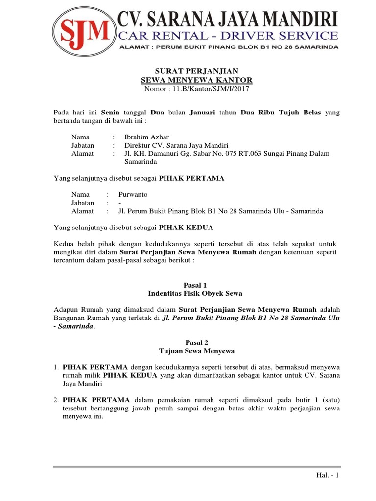Cara membuat Surat Perjanjian Sewa Mobil Bulanan